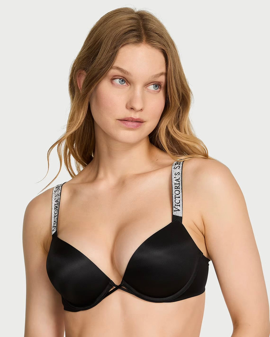 Postaw na odważny look i efekt maksymalnego uniesienia! Ten wyjątkowy biustonosz z kolekcji VERY SEXY został zaprojektowany tak, aby dodać Ci pewności siebie i podkreślić kobiece kształty. Błyszczące ramiączka z monogramem Victoria’s Secret ozdobione subtelnymi kryształkami oraz zmysłowy krzyżujący się detal z przodu sprawiają, że ten model to prawdziwa perełka wśród push-upów.